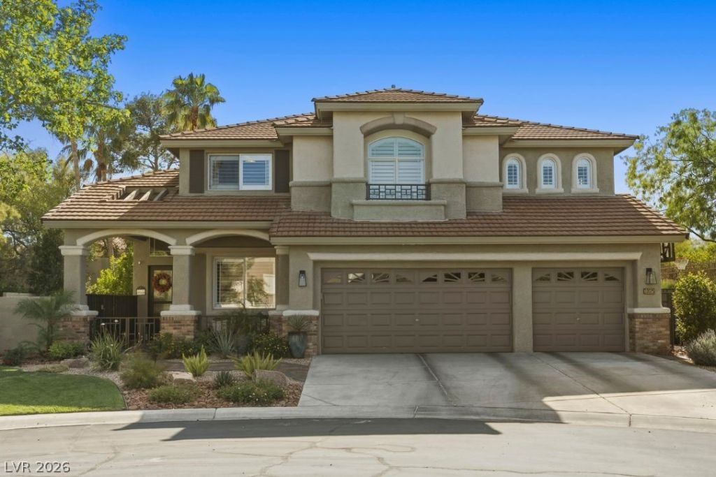 Welcome to gated Canyon Oaks in Summerlin's Trails Village. A corner cul-de-sac setting, a home beautifully reimagined since 2017, and a lifestyle that is ready the moment you arrive. Five bedrooms, three baths, loft, and three-car garage across 3,139 square feet. Luxury vinyl plank flooring, plantation shutters, custom soft-close cabinetry, quartz countertops, beverage center, and wine fridge. Pella sliders bring the outdoors in. The primary suite offers a private balcony, soaking tub, and dual vanities. Every finish, every fixture, every detail was chosen with intention. HVAC replaced 2019. Pool and spa updated 2024 with variable speed pump and LED lighting. Built-in outdoor grill, covered patio, artificial turf, Ecobee smart thermostats, and EV-ready 220 outlet in the garage. Adjacent to the recently updated Trails Park. Minutes from Downtown Summerlin, Village Center, top-rated schools, and TPC Summerlin. This is not a home you update. It is a home you fall in love with.